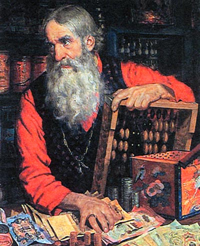 Но все же основная масса купечества была в долгополых сюртуках поверх цветных рубах. Особенно в провинции одевались по старинке. Борода не была отличительным признаком купцов, однако купца можно было отличить не только по полудлинной стрижке и окладистой бороде, но и по енотовой шубе и бобровой шапке. Купцы носили также цилиндры, котелки, картузы, суконные и плисовые шапки, мундирные фуражки и треугольные шляпы.