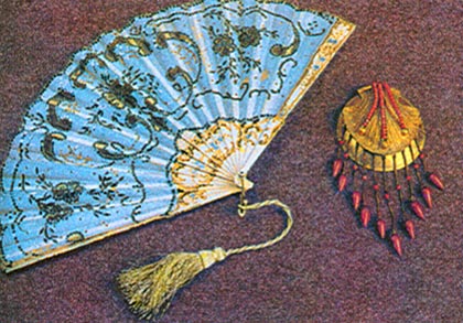 В качестве бальной обуви использовали атласные ботинки, украшенные пряжками и кружевом. Цвет ботинок — черный или в тон платья, с острыми носками и тонкими каблуками. Короткие перчатки в середине 60-х гг. сменили длинные до локтя. Поверх перчаток надевали по два-три браслета на обеих руках. Веера носили кружевные или тюлевые, расшитые блестками или стальными гранеными бусами.
