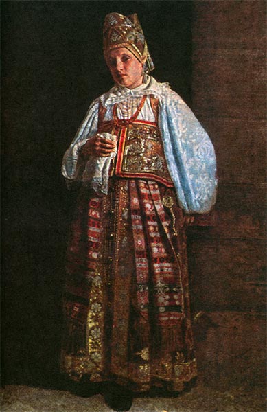 В женской крестьянской одежде наряду с сарафаном появилось городское мещанское платье, юбки. Головные уборы крестьянок заметно упростились. Кички и кокошники исчезли, платки стали надевать на повойники, напоминающие шапочку. Самой модной крестьянской одеждой в этот период стали парочки — сарафаны с кофтами, сшитые из одной материи. Кофты были свободными и носились сверх сарафана. Также в моде были полупальто, кожаные сапожки и фабричные платки-полушалки. Обувью служили вязаные шерстяные чулки и коты.