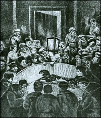 К известному часу подъезжали к «Голубятне» богатые купцы, но всегда на извозчиках, а не на своих рысаках, для конспирации, поднимались на второй этаж, проходили мимо ряда закрытых кабинетов за буфет, а оттуда по внутренней лестнице пробирались в отгороженное помещение и занимали места вокруг арены. За ними один за одним входили через этот зал в отдельный кабинет люди с чемоданами. Это охотники приносили своих петухов, английских бойцовых, без гребней и без бородок, с остро отточенными шпорами. Начинался отчаянный бой. Арена обливалась кровью. Одичалые зрители, с горящими глазами и судорогами на лице, то замирали, то ревели по-звериному. Кого-кого здесь не было: и купечество именитое, и важные чиновники, и богатые базарные торгаши, и театральные барышники, и «Чугунные шпяпы».