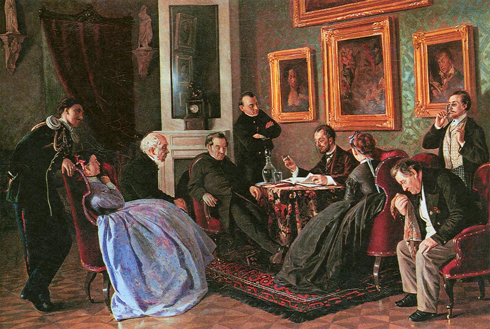 В разговор обычно вставляли пару остроумных колкостей или анекдот. Длинные рассказы тут были неуместны и утомили бы всех. Также необходимо было обменяться любезностями с присутствующими в комнате. Свои личные проблемы оставляли в передней вместе с калошами.