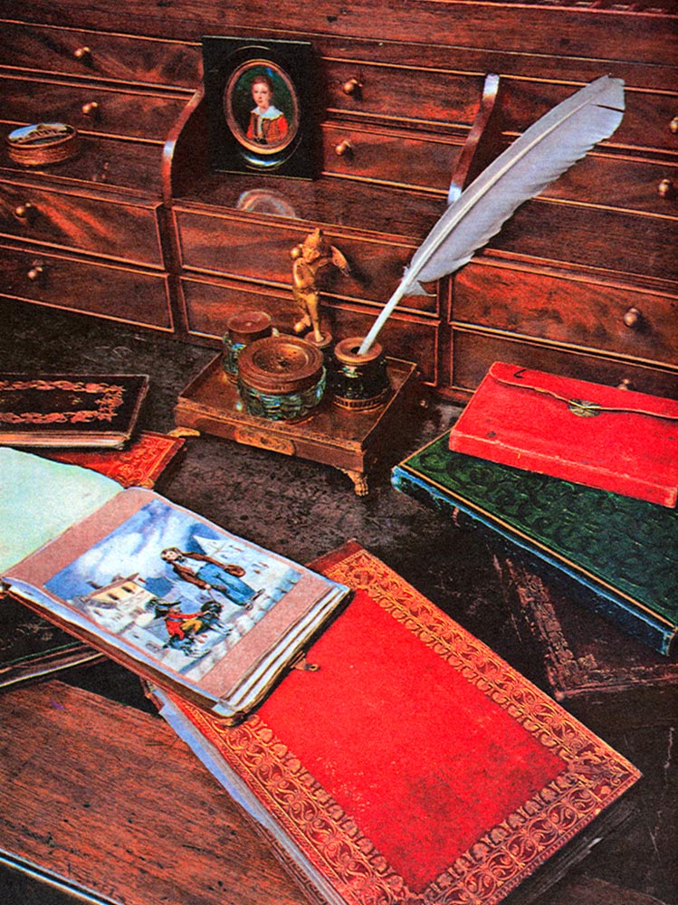 В первой половине XIX в. написанное письмо посыпали речным песком, который быстро впитывал жидкость, и затем его сдували. В середине XIX в. вместо песочницы на столе появилось пресс-папье — специальное приспособление с круглым качающимся основанием и крышкой. На овальное основание накладывали промокательную бумагу и прижимали сверху крышкой. Промокашка была изобретена случайно, когда в бумажную массу забыли добавить клей и обнаружили, что получилась рыхлая бумага, хорошо впитывающая чернила. В эпоху модерна появились первые телефоны, но письма все же продолжали писать.