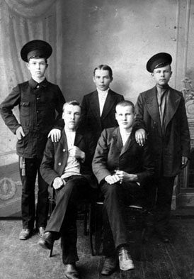 После гражданской. Н. С. Курдюков (сидит крайний слева)