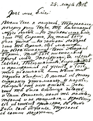 | Фрагмент из письма Н. Л. Батюшкова дочери Юлии. Автограф РО РНБ. Ф. 50 Оп. 1. Ед. хр. 31 Л. 1 Публикуется впервые |