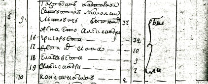 Поиски ответа на вопрос, когда родилась Александра Григорьевна Бердяева 32[И.Н. Ельчанинов ошибочно называет отцом Александры Григорьевны Григория Ивановича Бердяева (Ельчанинов И.Н. Материалы для генеалогии дворянства Ярославской губернии. Т. 3. С. 118). О том, что мать поэта была дочерью подполковника Григория Григорьевича Бердяева, свидетельствуют многочисленные документы. См.: ГАВО. Ф. 178. Оп. 10. Ед. хр. 473. Л. 2; Там же. Ед. хр. 414. Л. 4 об. и др.], осложняются тем, что мы не знаем, где она родилась. Чтобы решить задачу с двумя неизвестными, необходимо проверить две версии. Предположим, что мать поэта родилась в родовой усадьбе Бердяевых - сельце Глуповском. В таком случае главным источником сведений должны стать документы церквей, отложившиеся в фонде 496 «Вологодская духовная консистория». Отсутствие полного комплекта метрических книг за 1750-е годы 33[См.: Метрические книги церкви Всемилостивого Спаса, что на Угле, за 1757 и 1759 годы. - ГАВО. Ф. 496. Ед. хр. 1. Л. 1188,1276 об. - 1277. В названии дела ошибочно указан 1750 год.] потребовало от нас сплошного обследования исповедных росписей церкви Всемилостивого Спаса, что на Угле, за 1750-1778 годы: к Спасскому приходу относилась «вотчина» Г.Г. Бердяева (сельцо Глуповское, деревни Соболеве и Низкие Водожской трети Угольской волости Вологодского уезда). Отмечая возраст явившихся на исповедь, священники полагались обычно на свой взгляд. Погрешности в два-три года (при таком подходе) оказывались неизбежными. И всё же: по данным исповедных росписей церкви Всемилостивого Спаса, что на Угле, в 1770 году Александре Григорьевне Бердяевой -19 лет 34[ГАВО. Ф. 496. Оп. 19. Ед. хр. 201. Л. 7.], в 1771-м – 18 35[Там же. Ед. хр. 205. Л. 440.], 1774-м – 21 36[Там же. Ед. хр. 214. Л. 36.], 1775-м и 1776-м - соответственно 22 и 23 года 37[Там же. Ед. хр. 215. Л. 868; Ед. хр. 217. Л. 37.]. Таким образом, датой рождения матери поэта можно считать 1750-1752 годы 38[Сравним с данными исповедных росписей церкви Святой великомученицы Екатерины, что во Фроловке: в 1788 году Александре Григорьевне - 31 год, в 1790-м - 32, в 1791-м - 33. Таким образом, на «взгляд» священника этой вологодской церкви, А.Г. Батюшкова родилась в 1757-1758 годах (ГАВО. Ф. 496. Оп. 19. Ед. хр. 239. Л. 8 об.; Ед. хр. 241. Л. 47 об.; Ед. хр. 242. Л. 37 об.).].