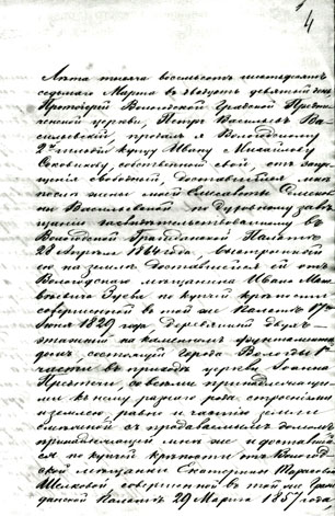 | Купчая крепость на дом протоиерея П. Васильевского, проданный вологодскому купцу И. М. Соковикову. ГАВО. Ф. 178. Оп. 1 Ед. хр. 10 181. Л. 4 |