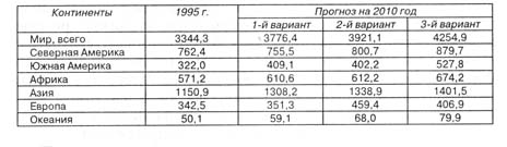 ПРОГНОЗ ОБЪЕМОВ ВЫВОЗКИ ДРЕВЕСИНЫ В ЦЕЛОМ ПО МИРУ И КОНТИНЕНТАМ, в млн. м3 (по данным ФАО)