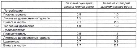 Объемы внутреннего потребления в Европе на перспективу рассчитаны согласно базовому сценарию среднегодовых темпов роста потребления лесоматериалов, предлагаемых ФАО/ЕЭК в двух вариантах: низких и более высоких темпах. Базовый сценарий предполагает ежегодный рост внутреннего потребления по пиломатериалам - на 0,8-1,0%, листовым древесным материалам - на 1,5-1,8, бумаге и картону - на 2,1-2,6, целлюлозе - на 0,9-1,1%.