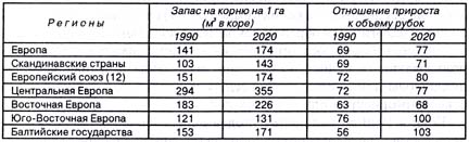 Несмотря на увеличение объема вывозок в Европе, как и прежде, будет заготавливаться не более 70% чистого ежегодного прироста, а запасы древостоя будут продолжать расти, при этом средний показатель увеличится с 141 м3/га в 1990 г. до 174 м3/га в 2020 г. и 197 м3/га в 2040 г. В некоторых странах центральной Европы средний показатель запасов древостоя на гектар достигнет небывалого уровня (таблица 6.24). Прогнозы относительно объема вывозок не предполагают значительного увеличения лесной площади, например, в результате преобразования сельскохозяйственных земель в лесные угодья.