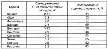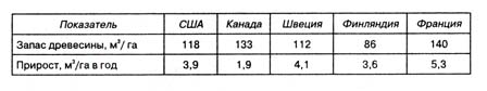 Обладая сравнительно невысоким средним запасом древесины на 1 га покрытой лесной растительностью площади (104 м3), Россия по этому показателю мало отличается от других стран Северного полушария с развитым лесным хозяйством (табл. 4.5).