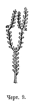 Солнечный припал поражает молодой лен при дождях, падающих при сильном солнечном сиянии— при дождях, «падающих из-под солнца», или при обильных росах, остающихся в виде капель даже и в те часы дня, когда солнце, поднявшись уже довольно высоко, начинает сильно припекать. При таких условиях вершинки льняных стеблей иногда совершенно засыхают, а потом из ближайших к вершинке листовых пазух развиваются новые ветви. При засыхании вершинок стеблей их рост останавливается, стебли теряют прямизну и на них являются колена а,а,а; поэтому, если солнечный припал повторится в лето два — три раза, то всякая надежда получить сколько-нибудь длинное волокно теряется, ибо всякий раз образуется на стебле колено и получаемый после него коленчатый стебель легко ломается в коленцах. Черт. 9 представляет лен, подвергшийся солнечному припалу два раза. Ржавчина. Если в то время, когда лен отцветает и завязываются семенные головки, начнутся сильные жары, перемежающиеся частыми дождями, то на стеблях появляется «ржавчина», в виде рыжеватых и черных пятен. Единственное средство получить от льняного поля выгоду, после появления на нем ржавчины, состоит в том, чтобы, не теряя времени, снять лен с поля, ибо если оставить его на корне дозревать, то может случиться, что ржавчина проест весь луб стеблей и сделает волокно никуда негодным. |