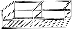 Общеупотребительный способ мочки тресты. Описанный способ подготовления тресты к отделению из нее волокна есть наилучший, его преимущества пред всеми другими заключаются в том, что он требует мало времени, и, при умении, дает наилучшее волокно и в наибольшем количестве, из данного количества тресты. Описанное выше устройство мочил есть наилучшее. В таких мочилах удобно мочить тресту не только в указанное выше время, но и во всякое другое. Но не везде можно найти такую местность, на которой было бы возможно иметь пруд и ниже запруды устроить мочило так как описано выше. Если это невозможно, то в крайности мочилом может служить обыкновенная копань, выкопанная в пригодном месте, со стоячею водою. Места для подобного рода мочил избираются в низинах и впадинах в некотором отдалении от поселка. Мочила эти следует обделывать досками, дабы защитить лен от грязи. Если обложить дно и стенки мочила досками окажется невозможно, то следует тресту помещать в клетки чер. 29, или решетчатые ящики, построенные из жердей и открытые сверху.
