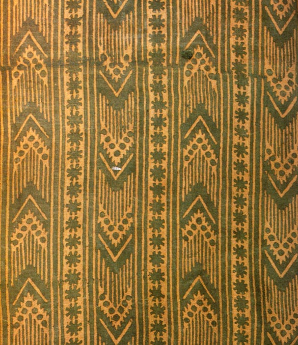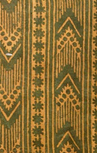 Среди способов украшения тканей набойка - едва ли не самый простой. Для набивки тканей применялась деревянная доска с резным узором или выложенным и врезанным в толщу доски металлическими пластинками и шпеньками. Квадратные доски - «манеры» размером примерно 20x20 см делали из твердых пород дерева. На такую доску наносили специальный состав — «вапу», отпечатывали его на гладком холсте, затем ткань опускали в чан, где она окрашивалась в густой синий цвет. Зарезервированный вапой узор оставался неокрашенным и тонким графическим рисунком выделялся на синем фоне. Иногда поверх основного орнамента мастера наносили специальными трафаретами оранжевые горошины, что обогащало декоративные качества ткани. Набивка тканей не была домашним производством. Этим промыслом занимались красильщики или синильщики, владевшие небольшими мастерскими и обслуживавшие население окрестных деревень. В каждой мастерской существовал узорник или «заказник» - многометровый холст с отпечатками всех имевшихся досок. Такой узорник раскидывали на местном базаре или ярмарке и по нему принимали заказы на изготовление набойки с соответствующим орнаментом. Заказчик прилагал к номеру узора рулон гладкого домотканого полотна и через некоторое время получал его в виде готовой кубовой набойки.