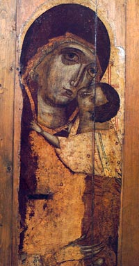 Выходцы из новгородских и «низовских» земель, заселившие в XI-XIII веках берега северных рек и озер, принесли в эти края и мастерство «иконного воображения». И древним насельникам края, и славянским поселенцам, многие из которых еще придерживались языческой религии предков, были знакомы основы изобразительного языка. Они умели выражать многообразие окружающего мира, сложность и тонкость существующих в нем взаимосвязей в ярких и емких образах-символах. Об этом мы можем судить по древнейшим пластам художественной культуры, сохранившимся в народном искусстве Русского Севера: по северным петроглифам, наскальным росписям, по материалам археологических раскопок, а также по древнейшим изобразительным мотивам в народной резьбе и росписи по дереву, в ткачестве и вышивке. С проникновением и распространением христианства к могучему стволу народного искусства на Севере привились и стали давать все новые побеги ростки византийской живописи, унаследовавшей художественные традиции восточных цивилизаций и античного мира. С образцами византийской художественной культуры в народном искусстве Северной Руси появился и стал занимать все более видное место образ человека как деятельной исторической силы, господствующей над стихиями, способной повлиять на ход событий в реальной жизни, хотя бы и в виде персонификации всемогущества демиурга. Это были все новые шаги по пути гуманизации искусства, по пути гуманизации народного мировоззрения. Однако этот процесс не был односторонним. Византийские образцы, привнесенные на Север уже, как правило, в новгородской или ростовской аранжировке, довольно скоро стали приобретать здесь своеобразный облик. Персонажи христианского пантеона на Севере утратили холодную недоступность идеальных образов византийского искусства и предстали в более близком и знакомом обличье, сокращавшем расстояние между землей и небом. Нередко в их фигурах появляются особенная торжественность, «столпообразие», напоминающие о прежних «болванах изваянных», стоявших в языческих капищах. Черты их лиц, их позы бывают оживлены проявлением человеческих чувств, исполнены готовности к сочувствию, к диалогу. Значительно меняется и само назначение произведений живописи. Иконы в жизни северного крестьянина утратили роль священных атрибутов, напоминающих о недостижимом сиянии и совершенстве божества, и приобрели более практическое значение. К святым, написанным на иконах, обращались как к реальным помощникам, защитникам от всякого зла, заступникам и ходатаям перед верховными небесными силами. С ними освящали дом и ограждали от беды домашних животных, с ними шли к венцу и отправлялись в дальний путь, с ними начинали всякое дело. Наряду с изображениями Богоматери и Христа у жителей вологодского края были особенно популярны иконы Николы - покровителя крестьянского труда, всех плавающих и путешествующих, Георгия Победоносца, Власия - «скотьего бога», Ильи-пророка, «ведающего» стихиями, Параскевы Пятницы - «способницы» ткачеству и семейному благополучию. С установлением культа русских святых широкой известностью и почитанием стали пользоваться иконы местных святых Дмитрия Прилуцкого, Кирилла Белозерского, Павла Обнорского и других. Иконы писали на деревянных досках, вырубленных топором из древесины разных пород. Чаще все
