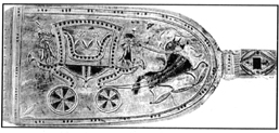 А в городе Городце, что на Волге, есть посудный шкаф, на котором большие картины вырезаны из дерева; они выпуклые, горельефные, раскрашенные, а местами и вызолоченные. Рассказывают эти картины о знаменитых битвах россиян со своими врагами, и в них есть конники, пешие, убитые, деревья, пушки, терема, плачущие по погибшим воинам матери и жены. На углах же этой горки одна над другой вырезаны фигурки древнерусских князей-победителей. Десятки фигурок, и все тоже дивно раскрашены и раззолочены.