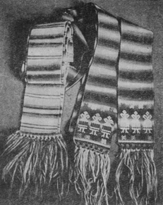 Ткали пояса из лучшего сорта крашеной шерсти. Техника их выработки совершенно особая – ткались они в маленьких бердышках с отверстиями в зубьях без применения ткацкого станка и без ремизок.