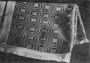 Очень богата, нарядна экспонируемая музеем скатерть. Рисунок на ней создается игрой светотени двух контрастных переплетений: темно-коричневая основа и белый, блестящий льняной уток. Фактура скатерти очень рельефна, простые мелкие геометрические формы – клеточки, квадраты, прямоугольники образуют более крупные и сложные фигуры в виде так называемых «пряников», «денежек».