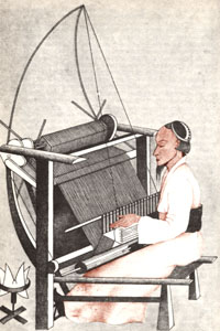 | Китайский шелкоткацкий станок с одной подножкой и поясным ремнем | Японский шелкоткацкий станок |