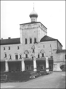 Вход в архиерейский двор находится около соборной колокольни. Вид на здания от входа очень красив... Самые здания оригинальны по архитектуре и обращают на себя внимание каждого любителя и знатока отечественной старины.
