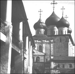 Не меньший интерес для ученых представляют сохранившиеся здесь в изобилии древние холщовые антиминсы. Самый древний антиминс относится к 7974-му, т. е. к 1466 году. Надпись весьма четкая, и антиминс, несмотря на свою пятивековую давность, сохранился прекрасно.