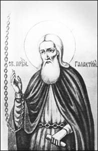 Подвиги Преподобного скоро стали известны жителям города и снискали ему всеобщую любовь и уважение. Преподобный никогда не выходил из своей кельи за исключением двух случаев: в первый раз-чтобы помолиться о ниспослании дождя, а во второй-чтобы предупредить градоправителей об угрожающей городу опасности от поляков и литовцев. В последнем случае, для отвращения праведного гнева Божия, он советовал жителям выстроить близ своей кельи обыденный храм во имя Знамения Пр. Богородицы. Речь пр. Галактиона быть может и произвела бы надлежащее действие, если бы некий Нечай Щелкунов, земский голова, не заподозрил Преподобного в своекорыстии. "Для своей пользы хлопочет старец,- говорил он,-ему хочется чтобы миром построили ему церковь и пустыню, а когда он помрет, та церковь запустеет и нам только убыток будет". Святой на это ответил: "Не о себе я забочусь, а о гражданах города. Жаль мне народа и храмов Божиих: не тот храм запустел бы, о постройке которого я говорил вам, а ваш (Щелкунов), тот разорится и травой порастет, дом твой тоже будет разрушен, и никто не будет жить тут от твоего рода; на моем же месте воздвигнутся обитель и храмы Божии". Многим из жителей, приходившим узнать о своей участи, Преподобный предсказал или гибель или спасение в недалеком будущем и всех призывал к покаянию и молитве. Грозное предсказание угодника Божия скоро исполнилось.