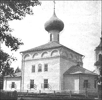 Нынешняя холодная церковь строена в 1698 году вместо деревянной. В иконостасе достойны внимания иконы: Преполовения, храмовая пр. Ильи, и многосложная с Сошествием во ад, писанная в 1568 г. Дионисием Гринковым.