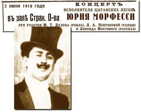 Юрий Спиридонович Морфесси (1882 - 1957), баян русской песни, как называли его современники. Певец, обладающий мощным, красивым голосом, в свое время не менее известный, чем знаменитые Александр Вертинский и Петр Лещенко.