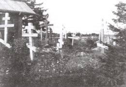 | 4. Деревенское кладбище (а, б): а – у придорожной часовни на тракте Никольск – Великий Устюг – Вологда Фото А. А. Линденберга, 1966 г | б – староверческое кладбище у д. Верховье Тотемского у. 1924 г. (ВОКМ 1001/30 Ф-939) |