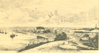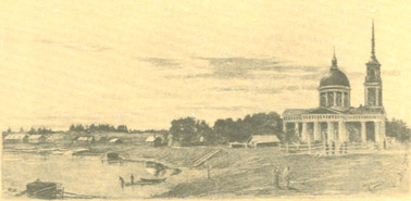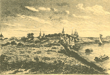 Берега реки Олонки при устье нарочито возвышены и состоят из песку и глины; далее вверх по реке вышина их убавляется, и они становятся отложее. В 24 верстах от устья вверх по Олонке лежит город Олонец, до которого по обе стороны реки много находится деревень и между ими два погоста – Ильинский и Туксинский, который от Олонца верстах в 9. Между сим последним погостом и городом пресекается судовой ход по Олонке каменистым порогом, сажен на 50 простирающимся, который, однако ж, дает еще проход лодкам, так что я до самого города на моем катере мог подняться.