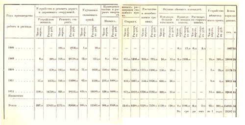 Ведомость хода лесных и мельоративных работ за время с 1908 по 1912 г. включительно
