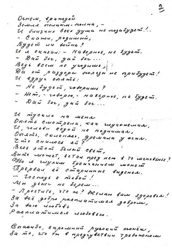 Вот этот промежуточный вариант стихотворения «Русский огонёк»:
