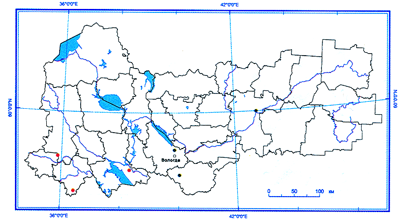 Колоколов, 1909; Особо охраняемые... 1993; Перфильев, 1936; Цвелев, 1978; данные автора.