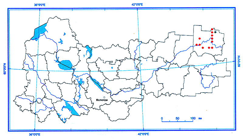 Находится близ северной границы ареала. В области встречается очень редко на территории Великоустюгского района по берегам p.p. Сухоны, Юга, Стрельны, Лузы, Шарденьги. Найден в окрестностях д.д. Братское, Усть-Алексеево, Бобровниково, Осочкино, Демьяново, Исаково, Студеное, Кузино, Анисимово, Демидово, Морозовица. Впервые в области вид был собран А. Г. Колмаковым в Великоустюгском районе в 1888 г. Позднее, в 1913 г., А. Шенников вновь подтверждает наличие вида на этой территории. В России встречается по всей европейской части (кроме крайнего севера), а также на Кавказе и в Западной Сибири. За пределами России распространен по всей Европе (кроме Фенноскандии) и в Юго-Западной Азии. Бореальный европейско-западноазиатский вид.