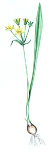 Луковичный многолетник 10-30 см высотой. Луковица небольшая, продолговато-яйцевидная, покрытая серо-бурыми че-шуями. Прикорневой лист превышает соцветие, плоский, ланцетный, 7-15 мм шириной, к верхушке внезапно оттянутый в колпачок, с нижней стороны с тремя жилками. Подсоц-ветных листьев два, неравных, нижний ланцетный, обычно превышающий соцветие, второй менее крупный, линейно-ланцетный или линейный, обычно короче соцветия. Соцветие из 8-10 цветков. Цветоножки бутонов, а после цветения и коробочек, дуговидно изгибаются книзу. Цветки без прицветников. Листочки околоцветника 13—18 мм длиной, ланцетные, тупые, бледно-желтые, снаружи зеленые. Плод - почти шаровидная коробочка. Цветет в апреле, плодоносит в мае. Размножается семенами и вегетативно - луковичками-детками.