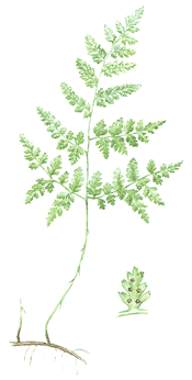Небольшой папоротник (15-40 см высотой) с тонким, черноватым корневищем. Пластинка вайи в очертании треугольная, трижды-, а в нижней части четыреждыперистая, нижние доли первого порядка неравнобокие; первая нижняя доля второго порядка заметно длиннее следующей за ней. Индузий пленчатый, колпачкообразный, голый или редкожелезистый. Растет небольшими куртинками. Размножается вегетативно и спорами. Вегетирует в мае - сентябре. Спороносит в июле - августе.