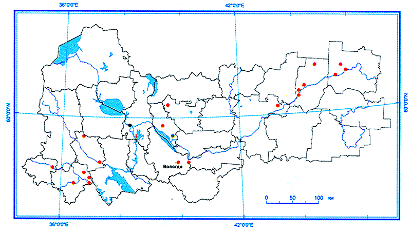 Иваницкий, 1883; Ильинский, 1922, 1927; Кобелева, 1976 б; Красная книга Архангельской области, 1995; Красовская, 2001; Орлова, 1993; Особо охраняемые ..., 1993; Перфильев, 1936; Шенников, 1914; данные автора.