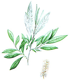 Дерево или высокий кустарник 5-9 м высотой. Древесина под корой с выступающими продольными валиками. Верхушки стеблей без воскового налета, густо-, но коротковолосистые. Почки до 8 мм длиной, толстые, яйцевидные, с клювовидно оттянутой верхушкой, желто-зеленые или темно-бурые, шерстистые. Листовые пластинки ланцетные или широколанцетные, в 4-8 раз длиннее ширины с зубчатым краем, многочисленными боковыми жилками, отходящими почти под прямым углом от главной жилки. Нижняя сторона опушена прижатыми волосками, лежащими под углом к средней жилке. Прилистники узколанцетные, короче черешка. Пестичные сережки во время цветения 3-5 см длиной, тычиночные - 1,6-2,5 см. Завязь и плоды на хорошо заметной ножке. Столбик почти равен по длине рыльцам. Цветет в апреле-мае, плодоносит в июне.