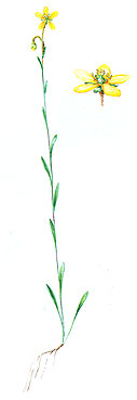 Многолетнее растение высотой до 30 см, с тонким корневищем и олиственными вегетативными побегами. Стебли одиночные или по нескольку, тонкие, нежные, под соцветием, с густым рыжеватым опушением. Листья очередные, светло-зеленые, узкие, сидячие. При основании стебля розетка более широких листьев, в основании плавно суженных в черешок. Цветки одиночные или по 2-3 на верхушке стебля, с 5 ярко-желтыми лепестками эллиптической формы, значительно длиннее чашечки. Плод - продолговато-овальная коробочка, до 1 см длиной. Цветет в июле - начале августа. Плодоносит в сентябре.