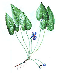 Многолетнее травянистое растение, 15-25 см высотой, с толстым корневищем до 6 см длиной, с розеткой прикорневых листьев. Пластинки листьев сердцевидно-яйцевидные или треугольно-яйцевидные, при основании неглубоко выемчатые, по краю городчато-зубчатые, густоволосистые. Прилистники яйцевидно-ланцетные, бахромчатые, без ресничек. Цветки до 2 см в диаметре, синевато-лиловые, без запаха, на довольно длинных цветоножках и располагаются в пазухах листьев. Прицветнички расположены ниже середины цветоножки. Плоды - шарообразные, опушенные коробочки, на поникающих плодоножках. Семена с мясистыми придатками. Цветет в мае - июне, плодоносит в июле - августе.