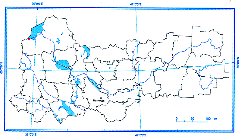 В области находится на южной границе равнинной части ареала. Известен только в Вытегорском районе (Оштинский погост, Жабинское болото) по сборам Л. С. Короткевич в 1949 г. В России встречается в северных и западных районах европейской части и в Сибири. Вне России известен в Европе, Китае и на востоке Северной Америки. Голарктический бореальный вид.