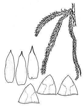 Двудомный мох, образующий крупные, рыхлые, вверху грязно-бурые с фиолетовым оттенком, лаково блестящие дерно-винки. Стебли жестковатые, желто-бурые, с 2-3-слойным гиалодермисом. Стеблевые листья 0,9-1 мм длиной и 0,7-0,8 мм шириной, треугольные, с коротко заостренной верхушкой и с каймой, расширенной к основанию листа. Боковые ветви собраны в пучки по 4-5, с 2 отстоящими и 2-3 свисающими ветвями, с пятирядно расположенными листьями. Листья отстоящих ветвей обращены в одну сторону, вогнутые, 1,6 мм длиной и 0,6-0,8 мм шириной, яйцевидно-ланцетные, блестящие, на наружной поверхности веточного листа водоносные клетки с мелкими кольчатыми порами в углах и вдоль комиссур.