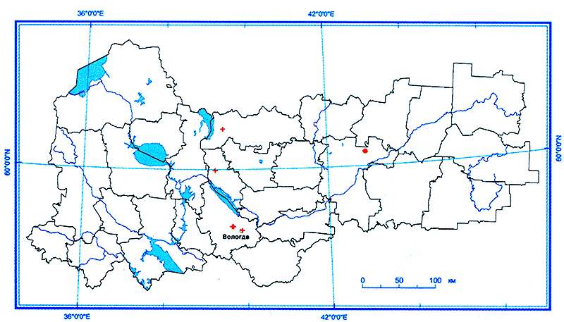 Впервые вид приведен для Вологодской области Рассадиной (1929), а затем подтвержден сборами Достойновой (1930). Всего известно пять местонахождений этого лишайника: окрестности д. Брюхачиха (Тотемский р-н), окрестности с. Бекетовское (Вожегодский р-н), окрестности г. Вологды, п. Молочное и д. Прибытково (Вологодский р-н), а также в месте слияния p.p. Ухтомицы и Уфтюги. К настоящему времени во всех приведенных местонахождениях вид, по-видимому, исчез. Неоднократные поиски лишайника в других вероятных местах произрастания также успехом не увенчались, возможно, он полностью исчез на территории области. На территории России известен в европейской части, на Урале, в Западной и Восточной Сибири. Вне России встречается в Северной и Средней Европе, Азии, Северной Америке. Повсеместно редок, везде отмечается сильное сокращение его численности, связанное с уменьшением площадей коренных ненарушенных лесов, в ряде случаев наблюдается его полное исчезновение.