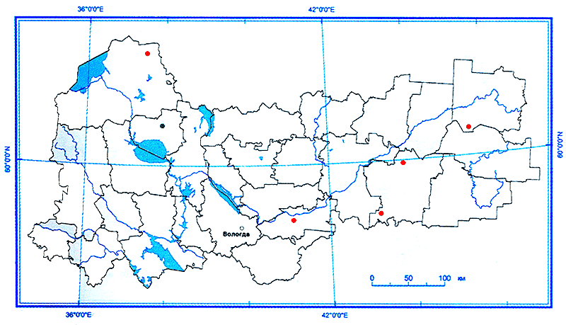 Известен из Великоустюгского (окр. б.н.п. Волома), Вытегорского (ЛЗ «Атлека»), Бабушкинского (бер. p.p. Ида и Лугода), Междуреченского (окр. с. Шуйское) районов. Впервые для флоры области отмечен А. И. Колмовским в 1896 г. для Вашкинского района (бер. р. Индоманка). Указывается также для бывших Кадниковского и Тотемского уездов. В России распространен почти по всей европейской части России, на Южном Урале, в Западной и Восточной Сибири, на юге Дальнего Востока. За пределами России встречается в Северной, Центральной и Восточной Европе; Западной, Центральной, Восточной Азии; Северной Америке. Почти циркумбореальный вид.