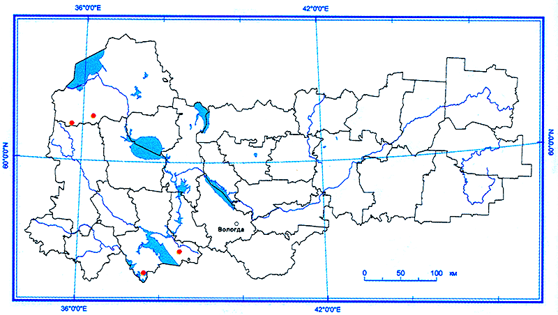 В Вологодской области встречается по берегам Рыбинского водохранилища: на территории Дарвинского заповедника, в Череповецком (окр. д.д. Павлоково, Большая Новинка), а также в Вытегорском (бер. оз. Шимозеро и оз. Куштозеро) районах. В европейской части России вид встречается спорадически; более обычен он на юге Сибири и в особенности на юге Дальнего Востока. Ареал охватывает Северную (юг Финляндии), Атлантическую, Центральную и Южную Европу; Центральную и Восточную Азию. Реликтовый евразиатский вид.