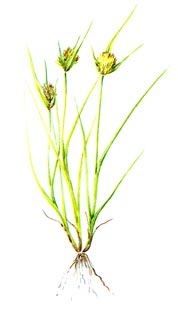 Двулетнее, реже многолетнее, рыхлодерновинное растение высотой 6-25 см. Стебли с расставленными узлами. Своеобразие растению придает плотное щетинистое головкооб-разное соцветие с 2-4 прицветными линейными листьями, значительно превышающими общее соцветие. Колоски ги-некандрические (т. е. с пестичными цветками в верхней части колоска и с тычиночными - в нижней), многоцветковые. Мешочки плоско-выпуклые, удлиненно-ланцетовидные, перепончатые, 7-9 мм длиной, по краям почти до основания с узким зазубренным крылом, с очень длинным и узким глубокодвузубчатым носиком. Цветет в июне - августе. Плодоносит в июне - сентябре.