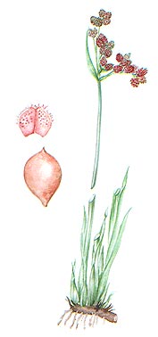 Многолетнее растение 50-180 см высотой, с длинным, черно-бурым корневищем, обычно образующее большие группы. Стебли цилиндрические, серовато- или сизо-зеленые, при основании с кожистыми влагалищами, иногда с линейными листовыми пластинками. Общее соцветие щитковидно-зонтиковидное, у основания с 1-2 линейно-шиловидными прицветниками. Средние колоски на укороченных, боковые - на удлиненных цветоносах. Колоски - многоцветковые, яйцевидные или продолговато-яйцевидные, 5-8 мм длиной, красно-бурые. Кроющие чешуи цветков черепитчатые, эллиптические, на верхушке выемчатые и в выемке с короткой остью, по всей поверхности с красно-бурыми бородавочками, по краю тонкореснитчатые. Околоцветник- простой из 6 светлых щетинок, с многочисленными направленными вниз ши-пиками. Тычинок три. Завязь верхняя, с линейным столбиком и 2 рыльцами. Орешек плоско-выпуклый, около 3 мм длиной. Цветет в июне. Плодоносит в июле - августе.
