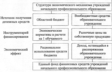 учреждениями. Таким образом, учреждения НПО в регионе формируют многоканальную систему финансирования, что влияет на новую модель экономического механизма деятельности образовательных учреждений, структура которого представлена на рис. 3.2.