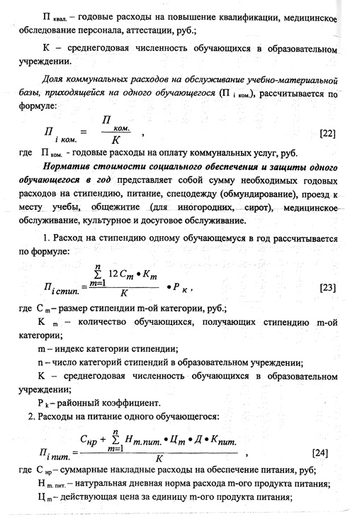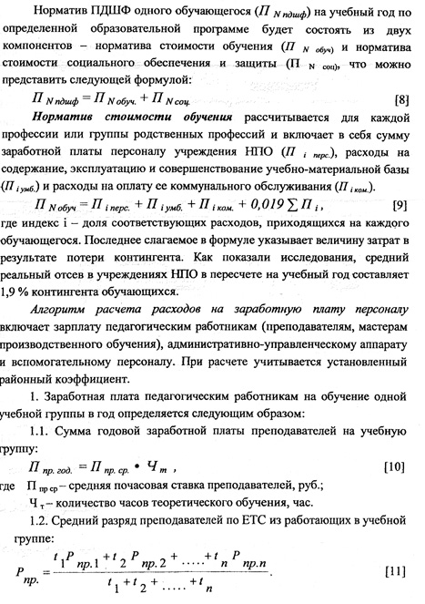 В настоящее время разрабатываются многовариативные подходы установления норматива стоимости обучения на одного учащегося по типам образовательных учреждений и различным профессиям. В процессе практико-ориентированного исследования по теме «Методика разработки норматива подушевого финансирования в системе НПО» [20, 21, 36], проводимого Институтом развития профессионального образования под руководством М.В. Никитина, в котором автор принял участие, рассмотрим апробацию методики расчета норматива ПДШФ в профессиональном лицее № 31 г. Вологды.