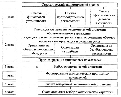 Рис. 3.3. Алгоритм формирования и оценки эффективности экономической стратегии образовательного учреждения