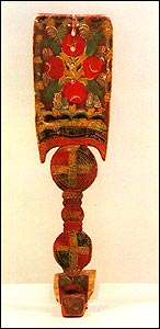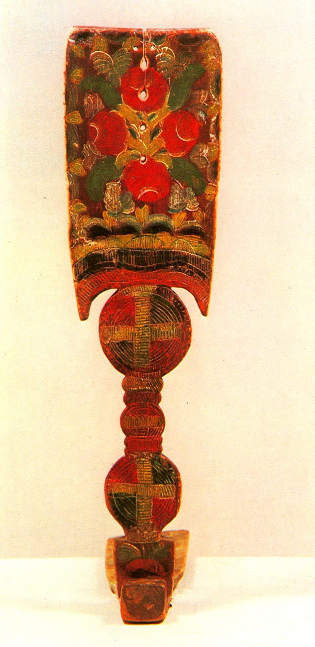 Прялки Псковской области в классификацию А. А. Бобринского не вошли. По конструкции близки к прялкам южных районов Калининской области. Их ножка врубалась в массивную головку донца без попытки скрыть место соединения. И так же, как и у калининских сплошных прялок, в прялках Псковской области ясно читается полотно сплошной доски, идущее от самого основания. Из нее впоследствии выделилась лопатообразная лопасть, а нижняя часть ее еще сохранила широкие плоскости трех кругов, как и у прялок Нелидовского района Калининской области. В декоре псковских прялок много общих приемов резьбы с прялками Литвы. Неглубоко нарезанный ножом простой ритмичный узор, состоящий из параллельных полос, очень близок к резному декору литовских прялок.